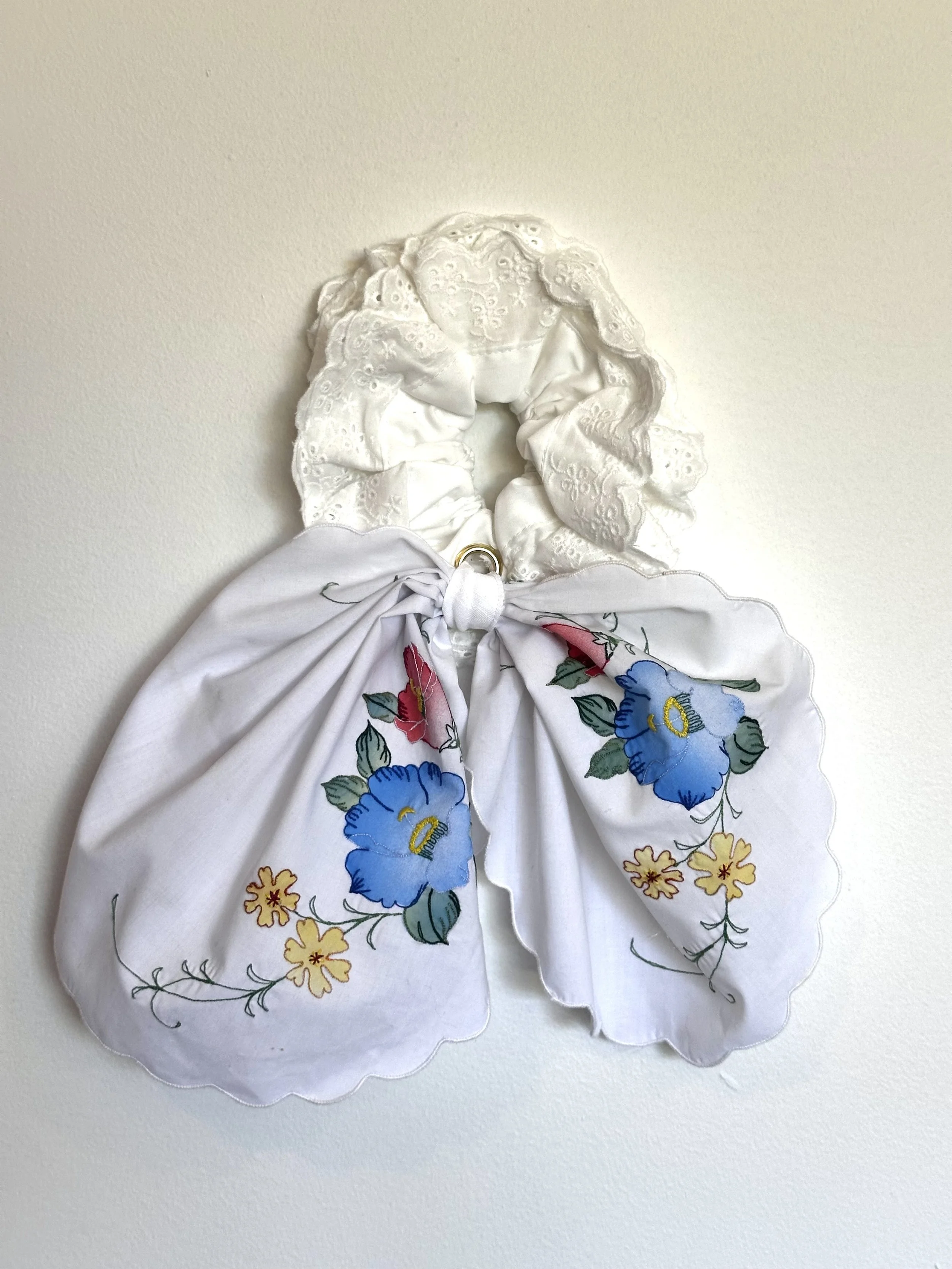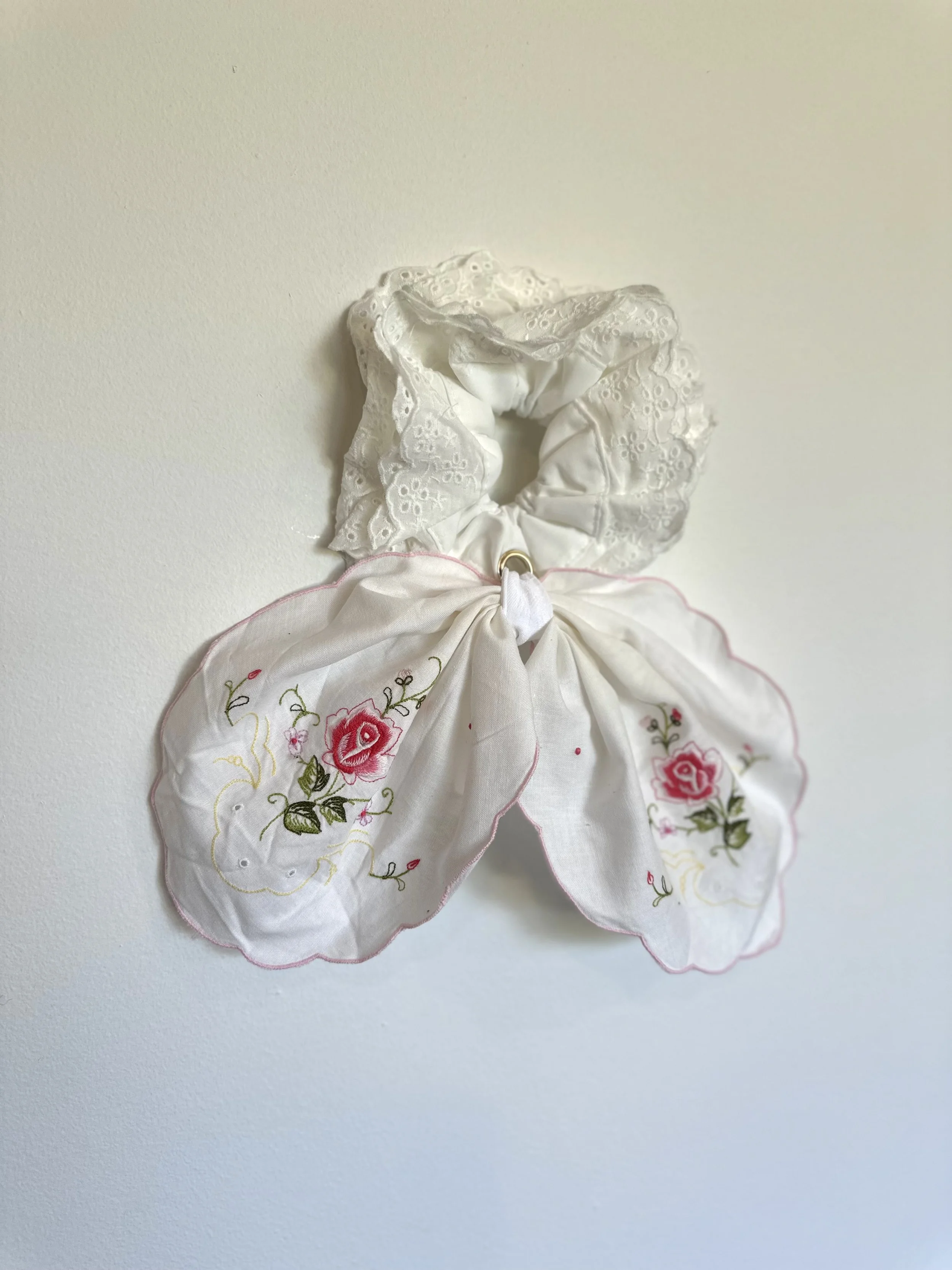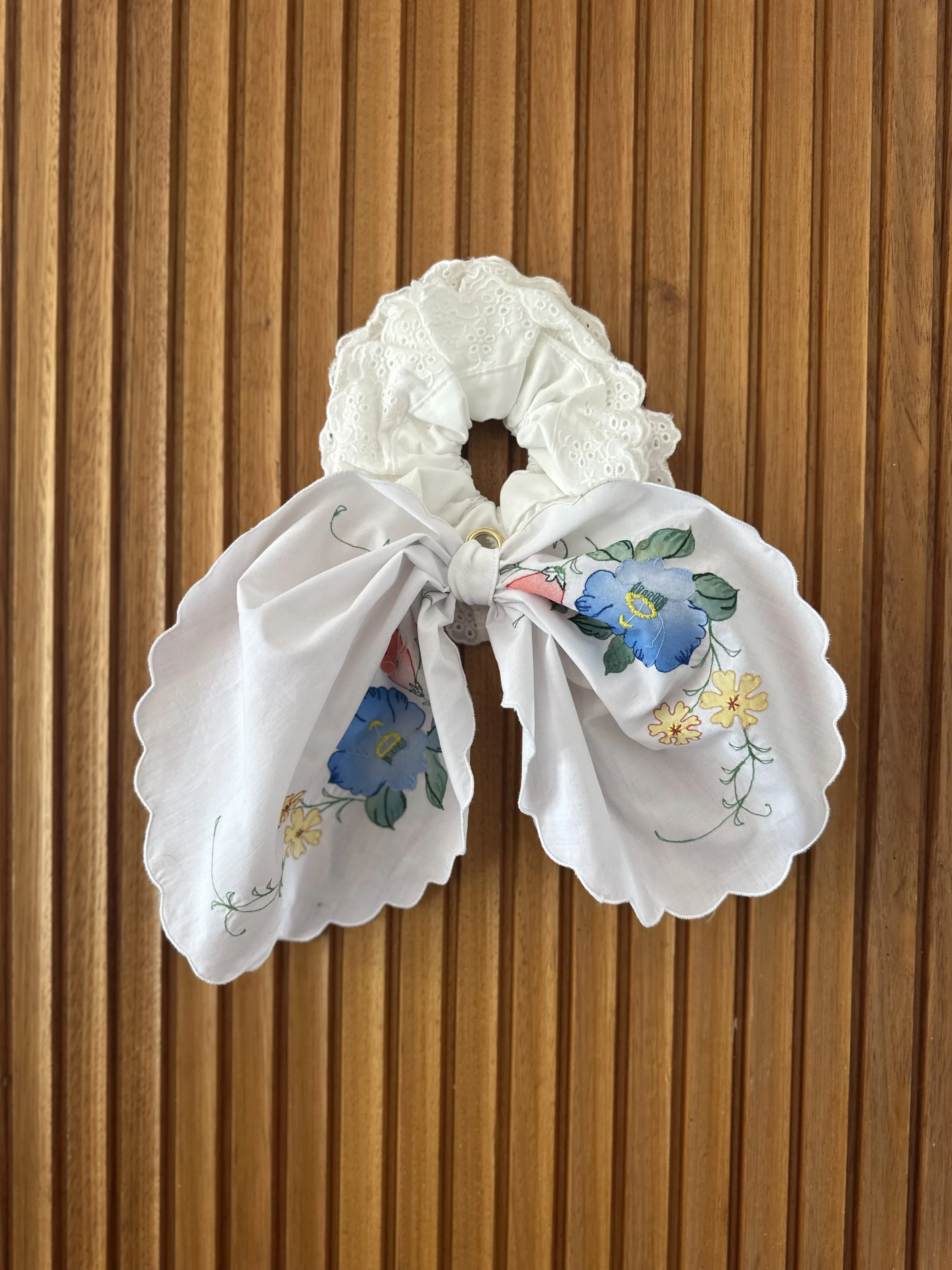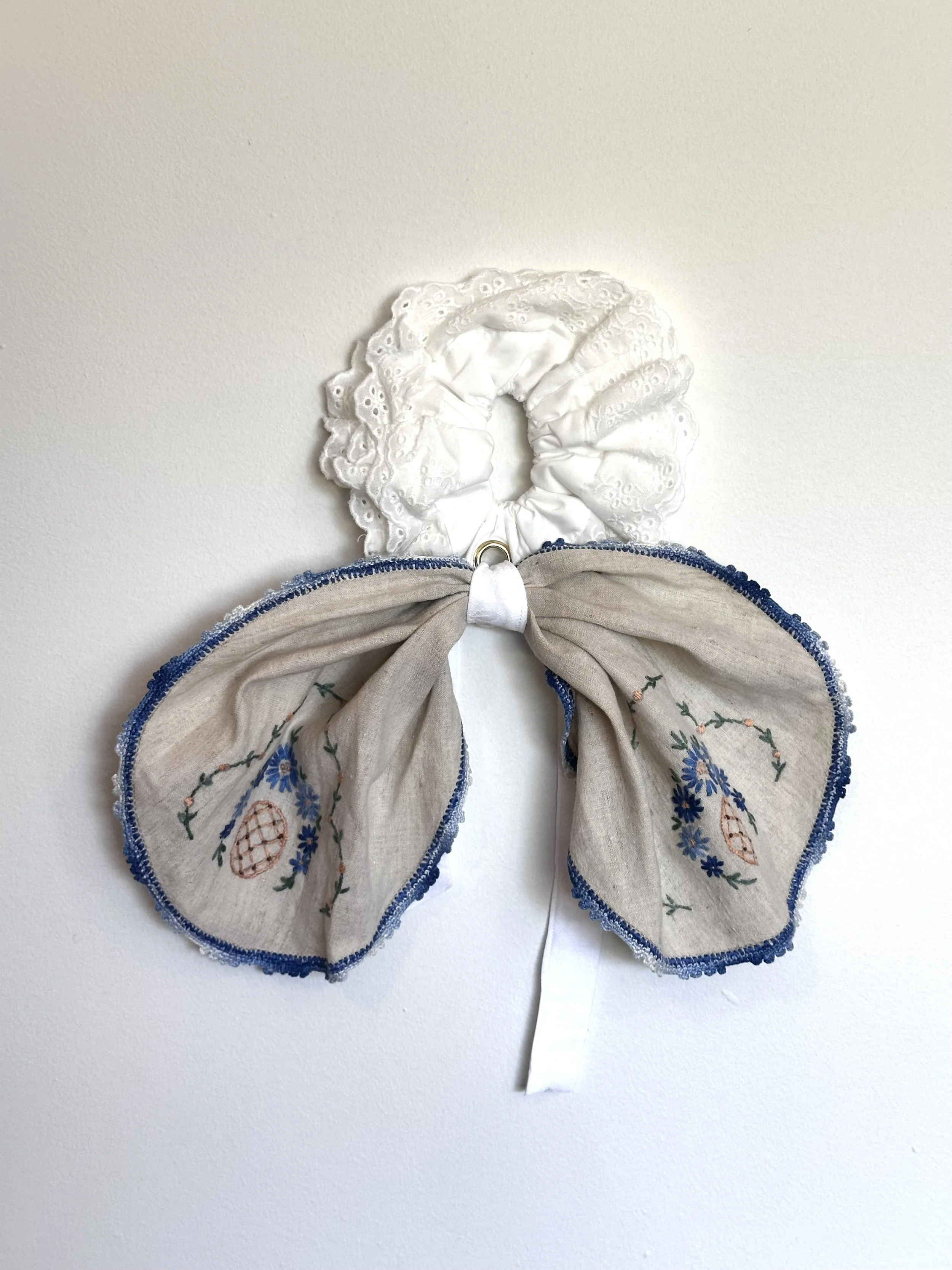 Made from upcycled baby blue velvet, vintage 1960s lace and adorned with an antique cherub brooch and hand embroidered stars, this one of a kind choker will make you feel like magic.