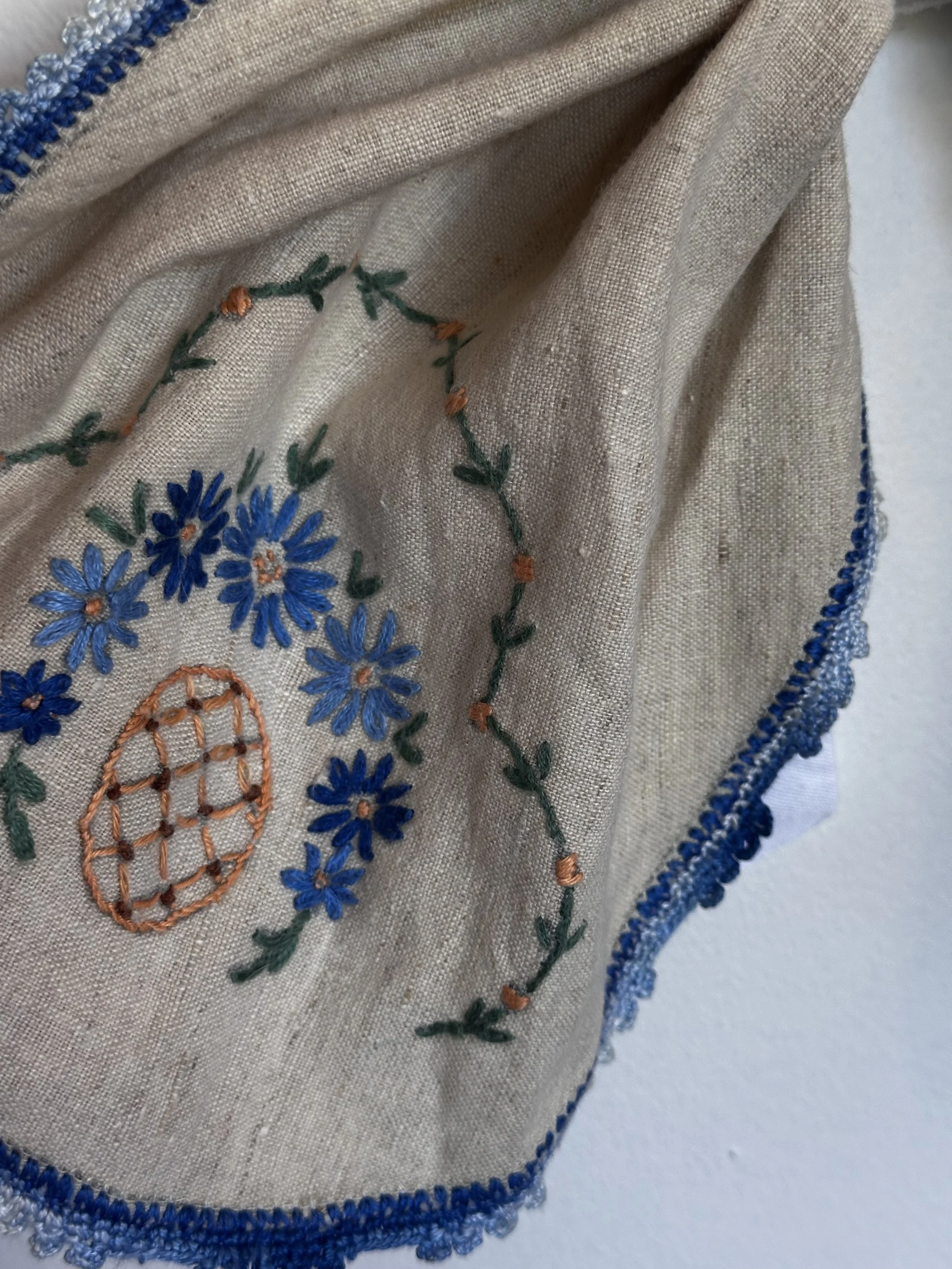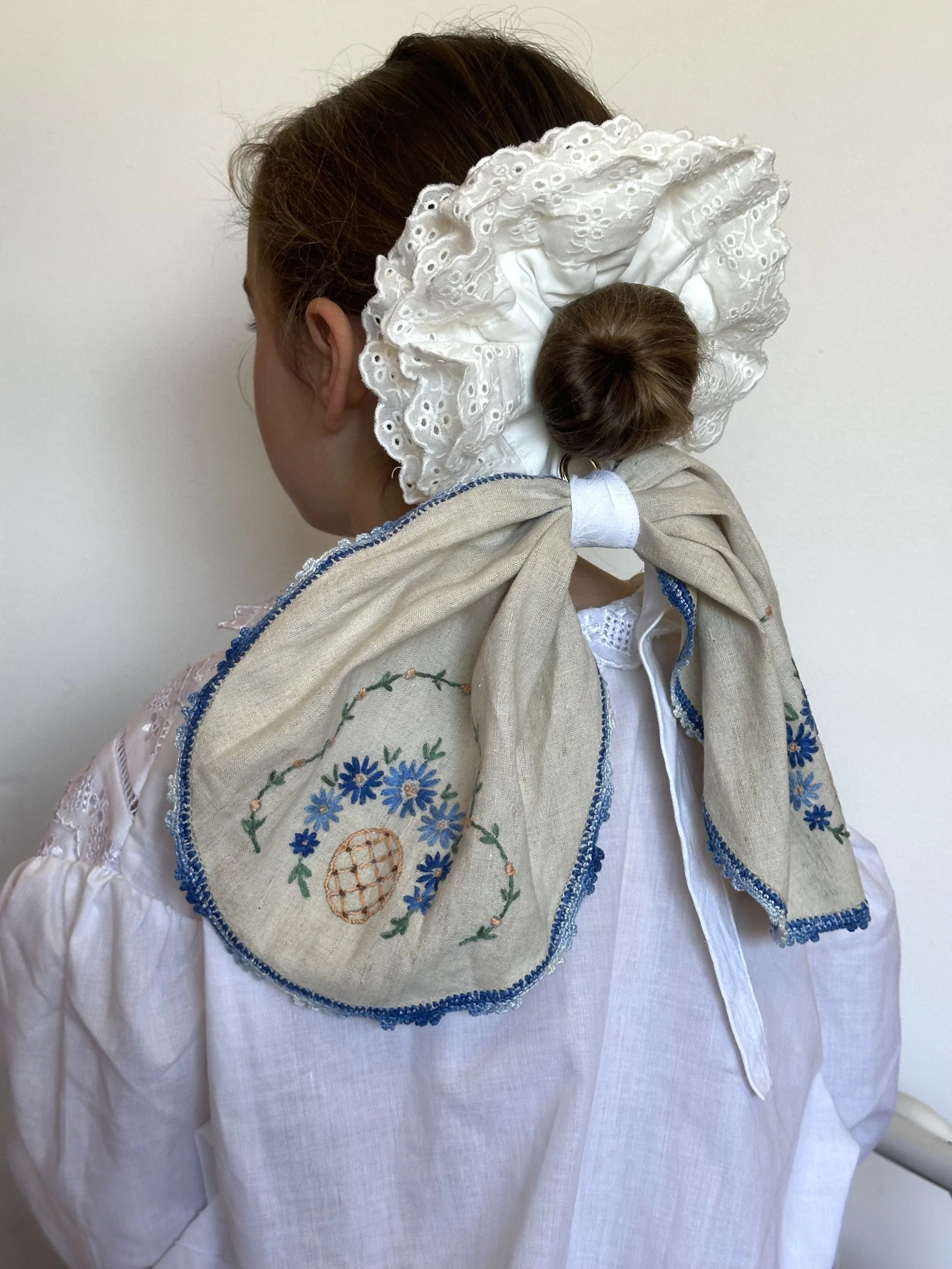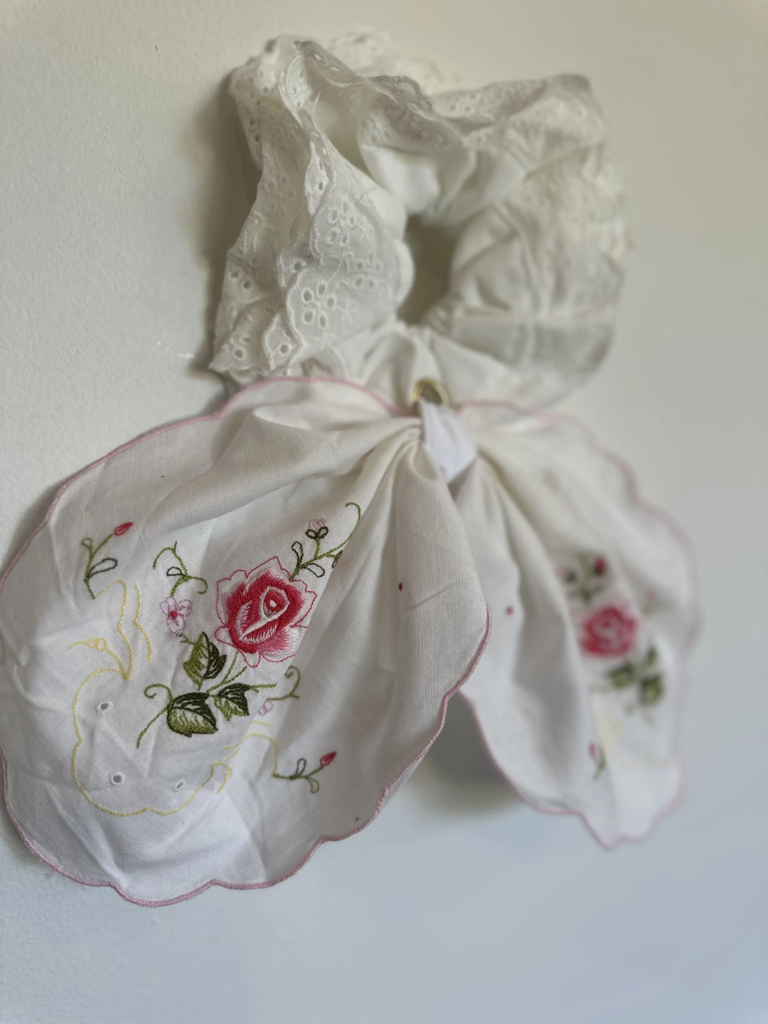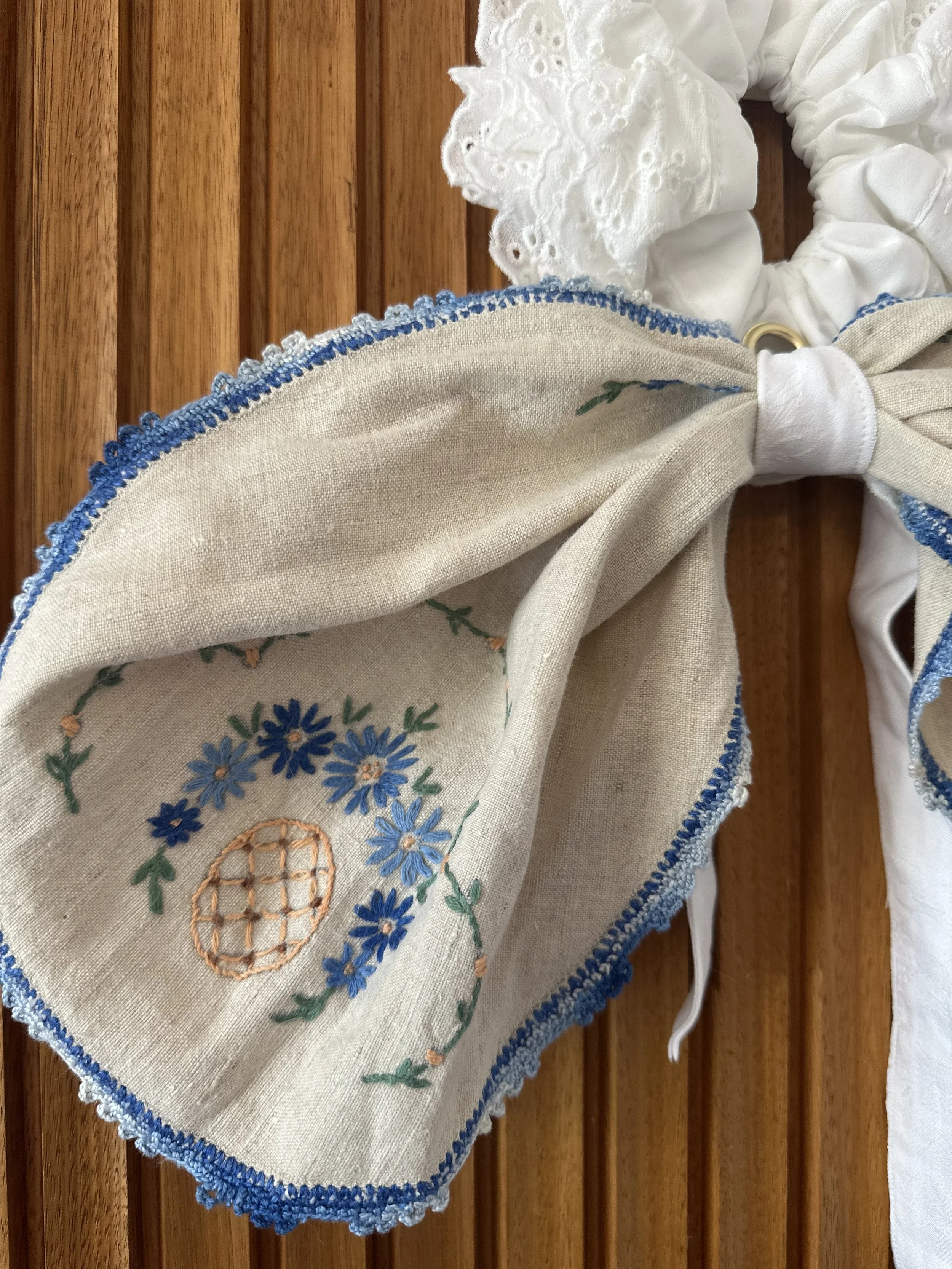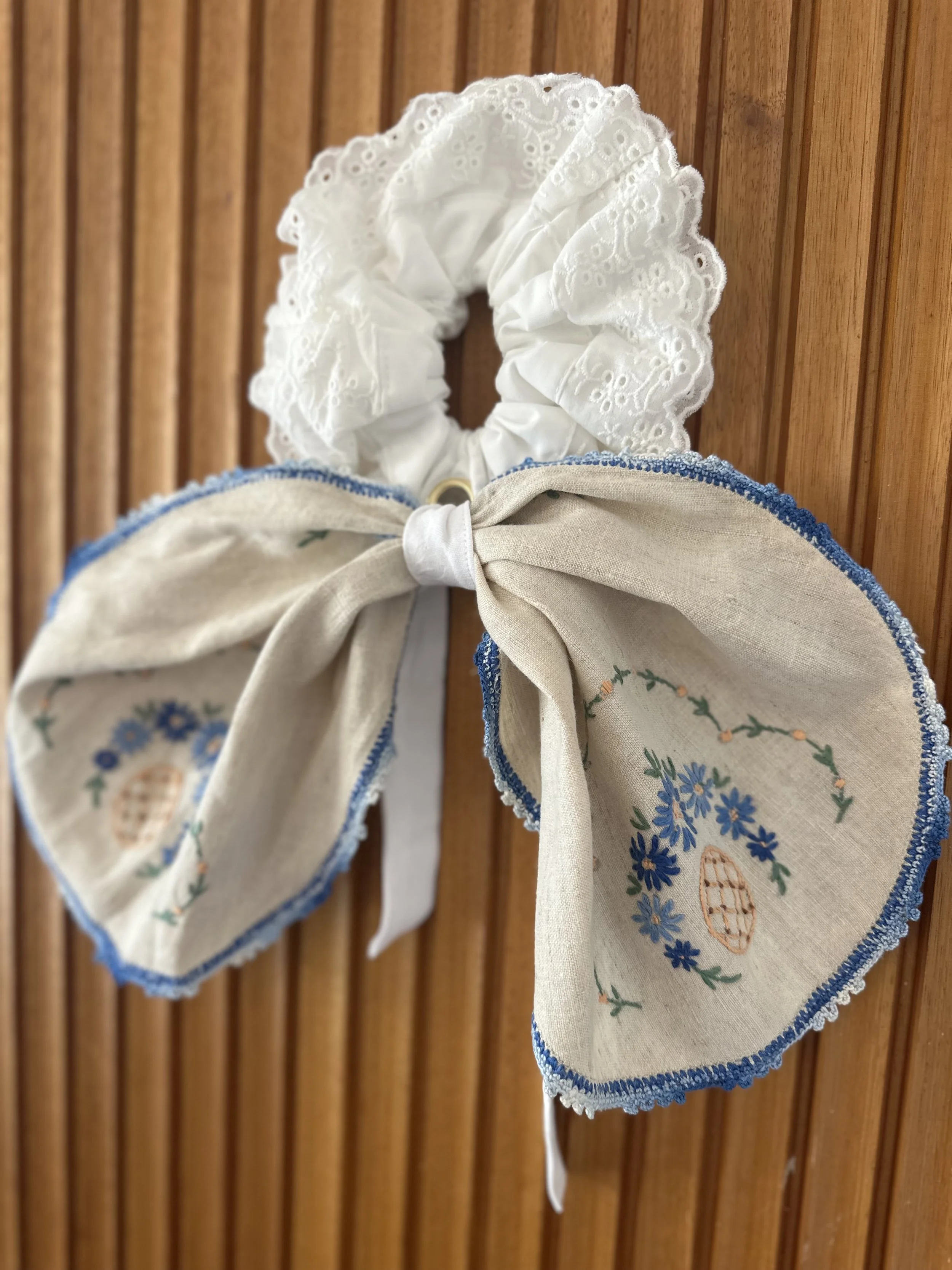 Made from upcycled baby blue velvet, vintage 1960s lace and adorned with an antique cherub brooch and hand embroidered stars, this one of a kind choker will make you feel like magic.