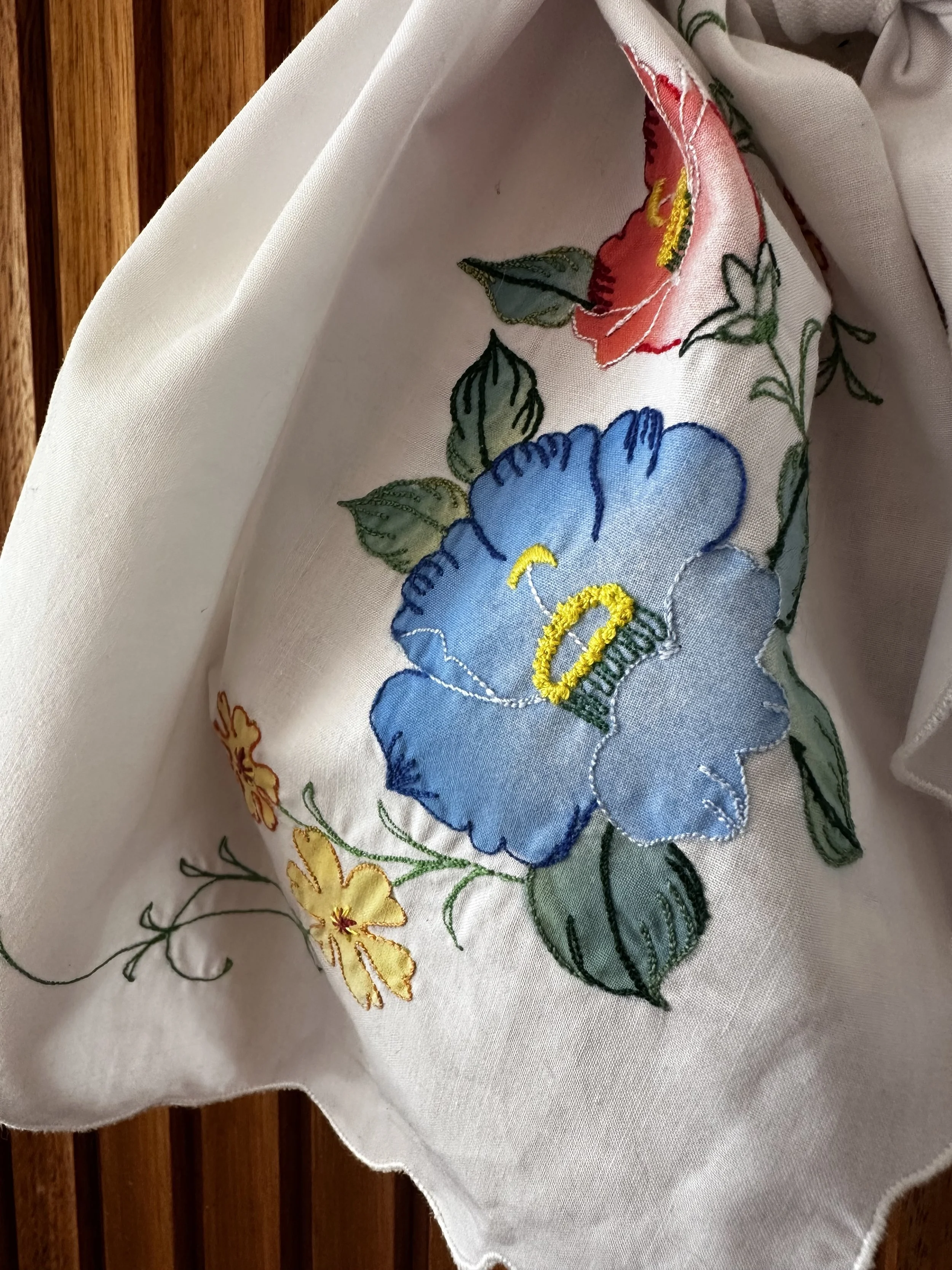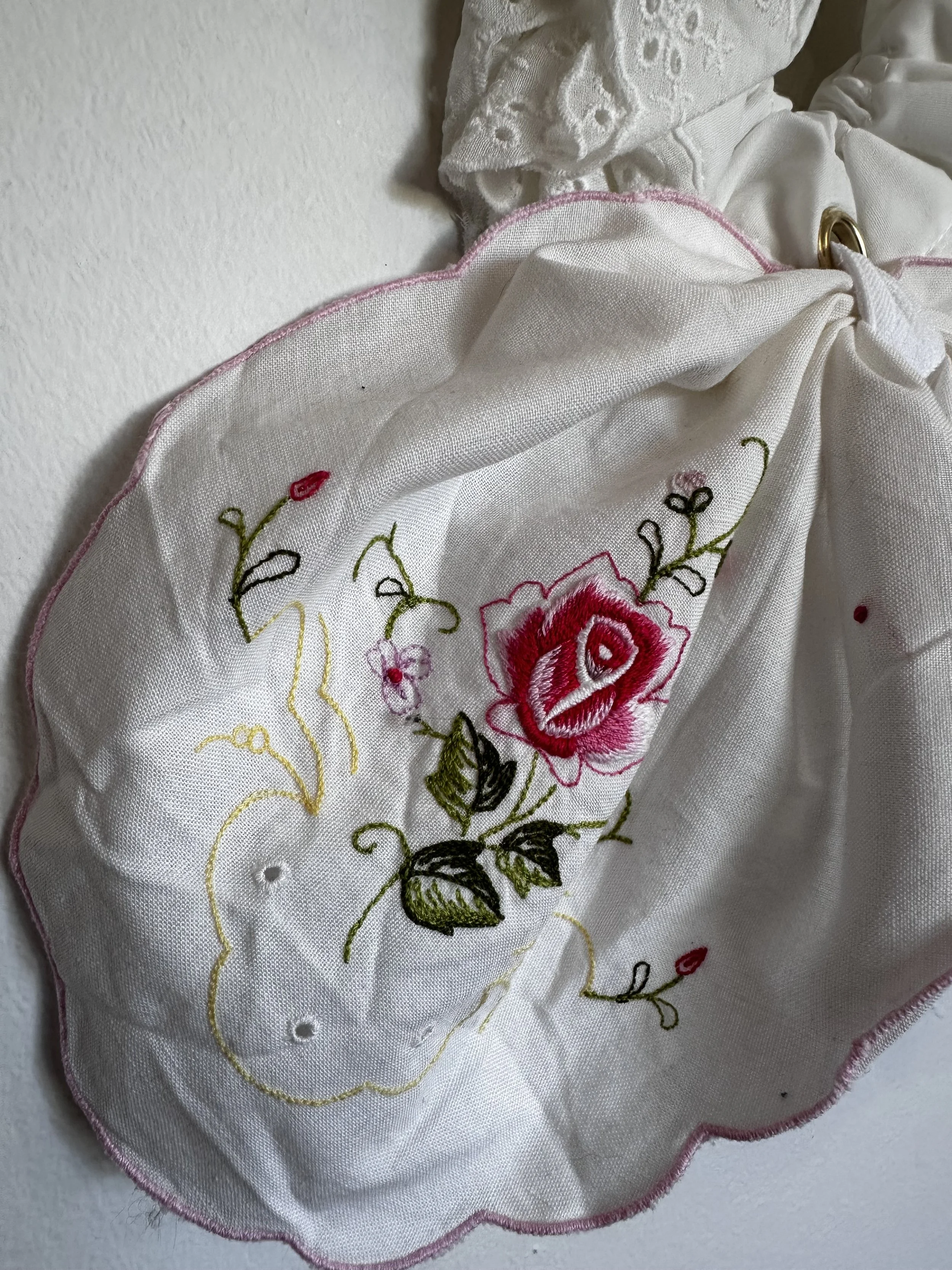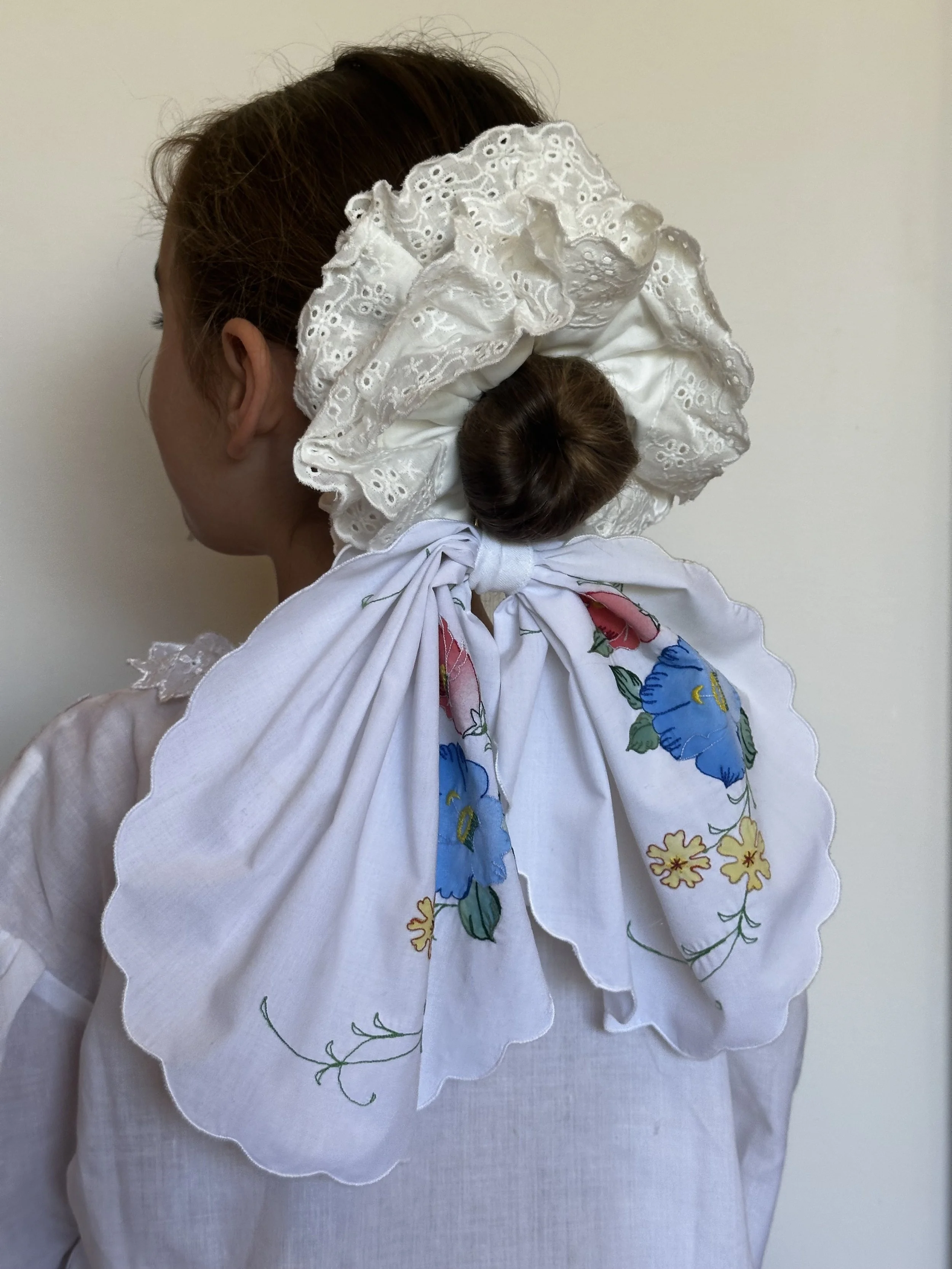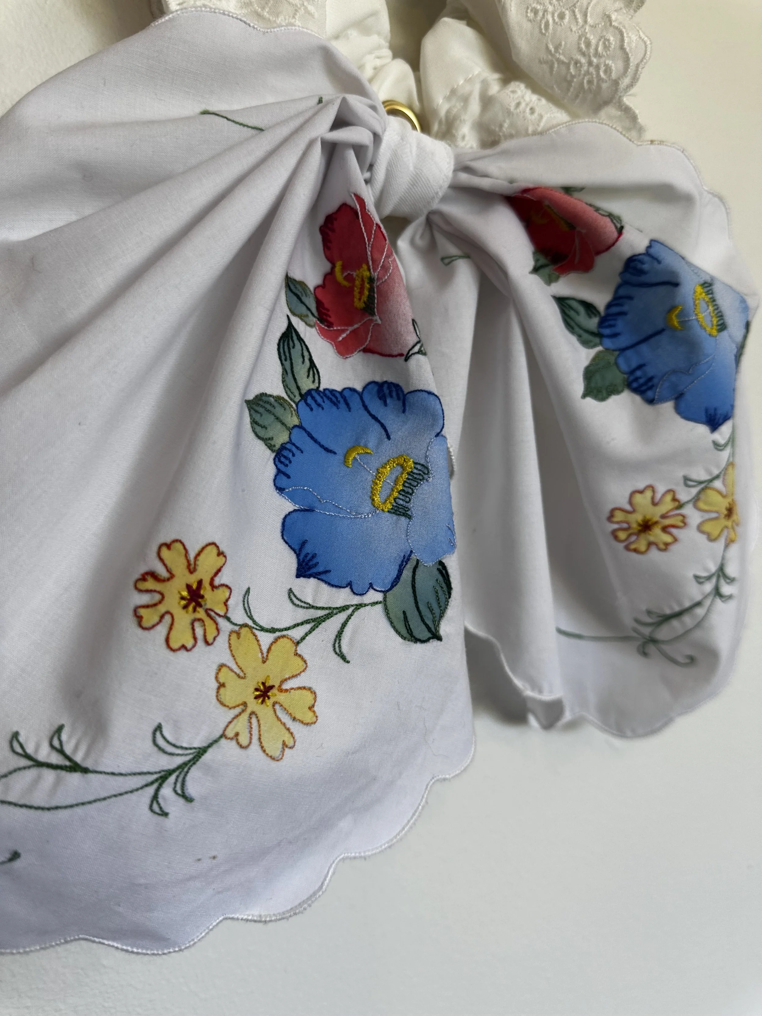 Made from upcycled baby blue velvet, vintage 1960s lace and adorned with an antique cherub brooch and hand embroidered stars, this one of a kind choker will make you feel like magic.
