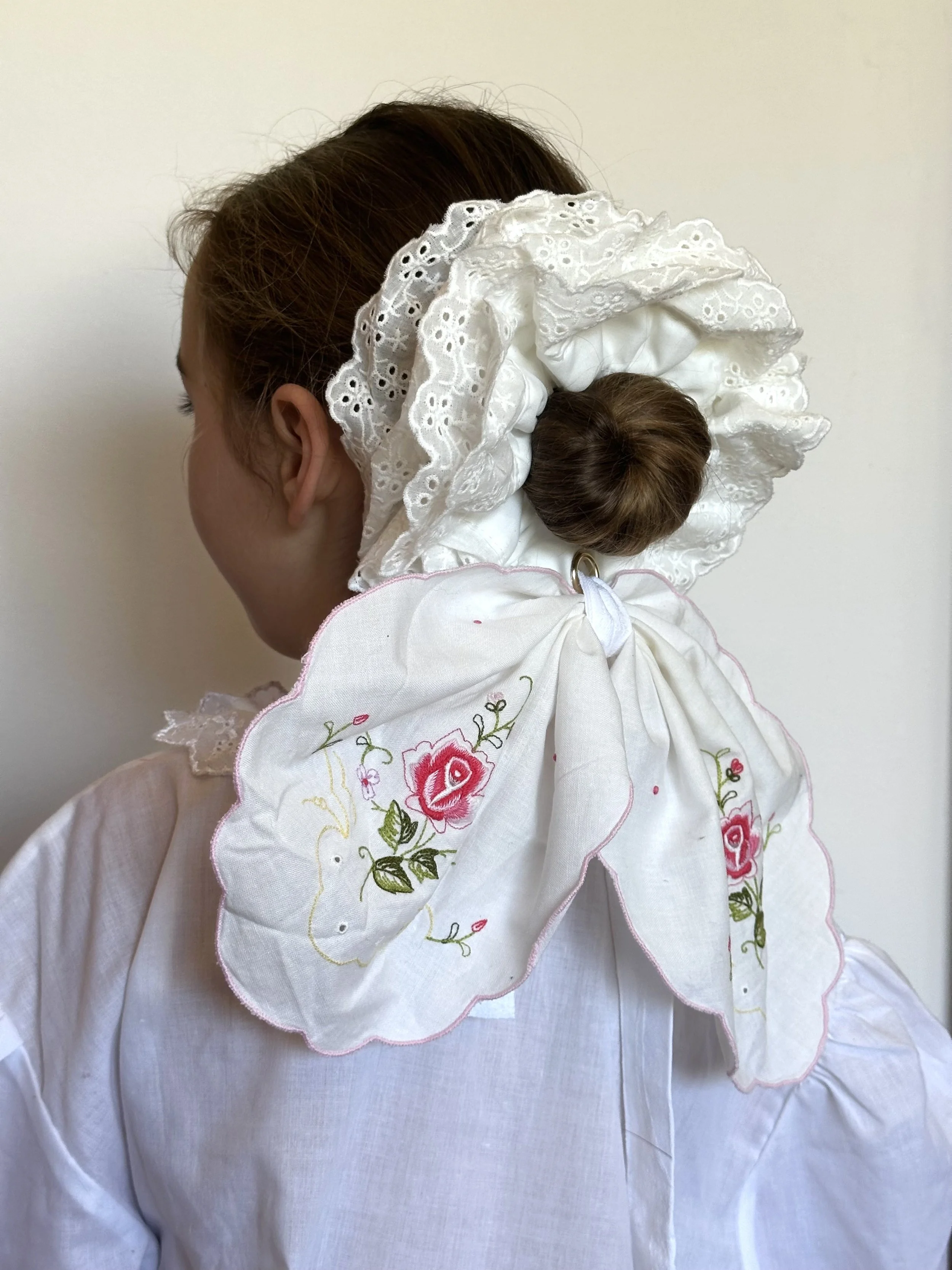The pink satin ribbon is long enough to be tied in a bow at the back of your neck and the choker can even be worn in your hair as a headband.